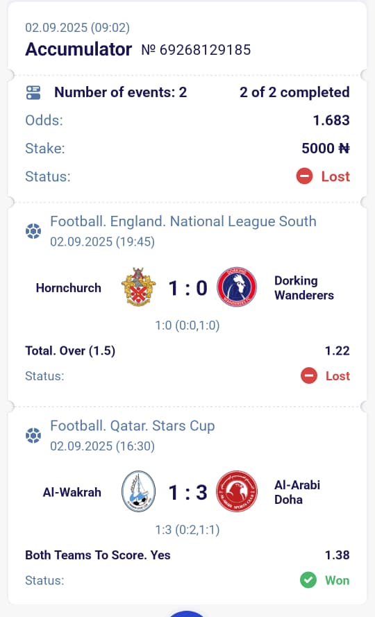 QAT | AL Wakrah SC VS Al Arabi Doha SC | GG | 1 : 3 |