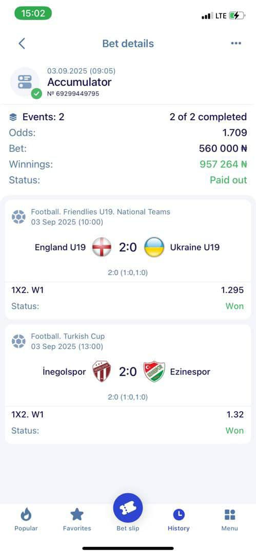 UCL | Bilbao VS Arsenal | x2 | 0 : 2 |