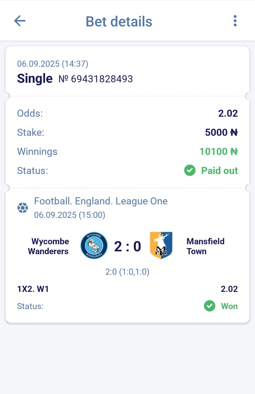 ENG | Wycombe VS Mansfield | 1 | 2 : 0 |