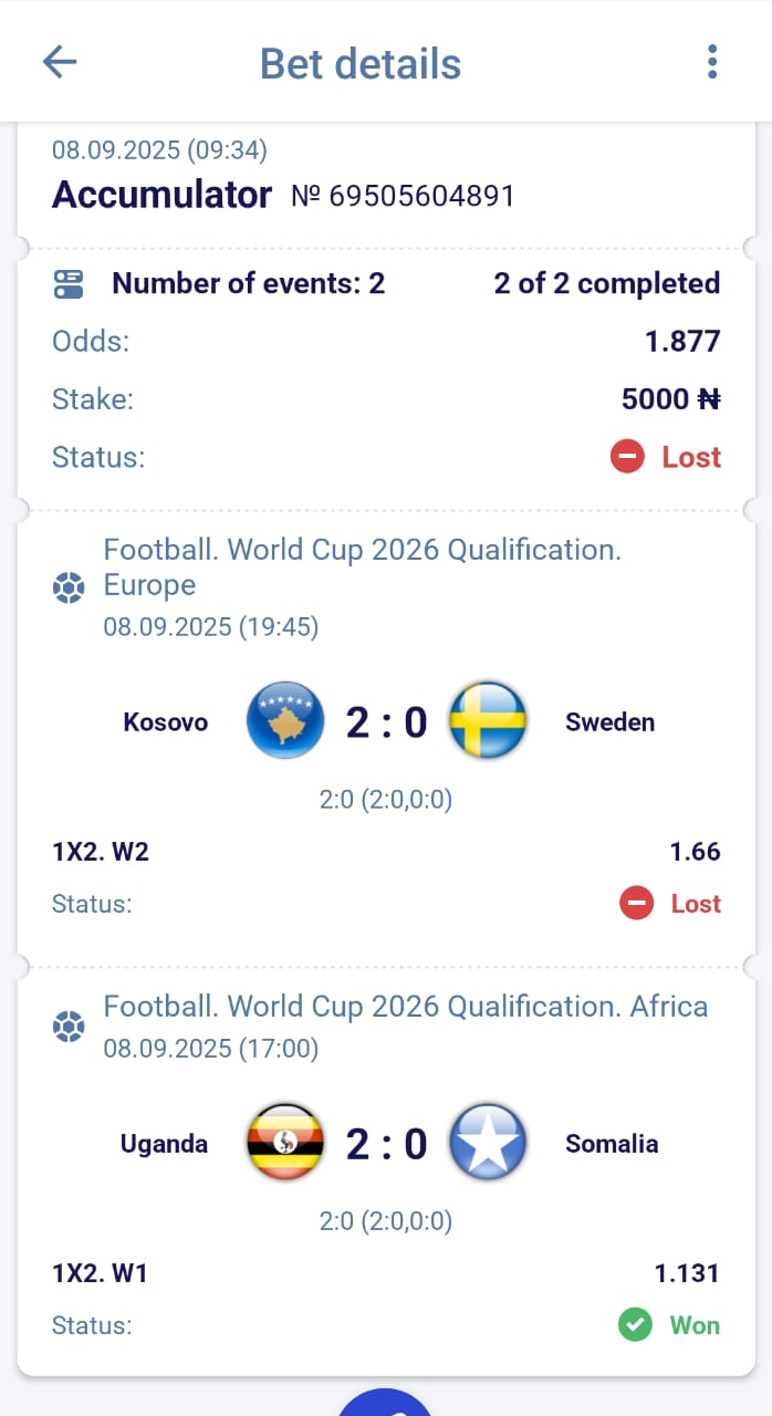 WC | Uganda VS Somalia | 1 | 2 : 0 |