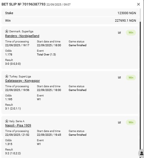 | DEN | Randers VS Nordsjaelland | ov 1.5 | 3 : 0 |