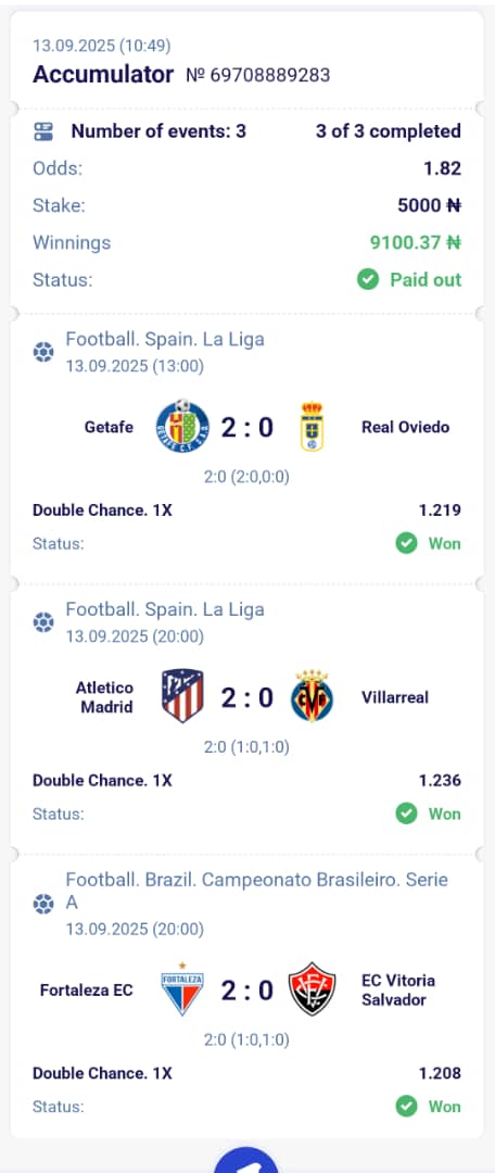 | BRA | Fortaleza VS Vitoria | 1x | 2 : 0 |