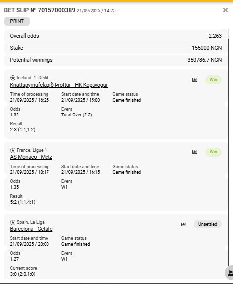 | ISR | Maccabi Tel Aviv FC VS Hapoel Jerusalem FC | Home ov 1.5 | 2 : 1 |