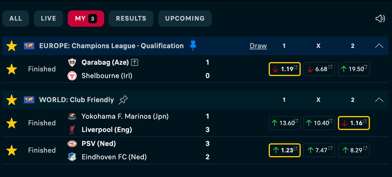 | UCL | Qarabag VS Shelbourne FC | 1 | 1 : 0 |