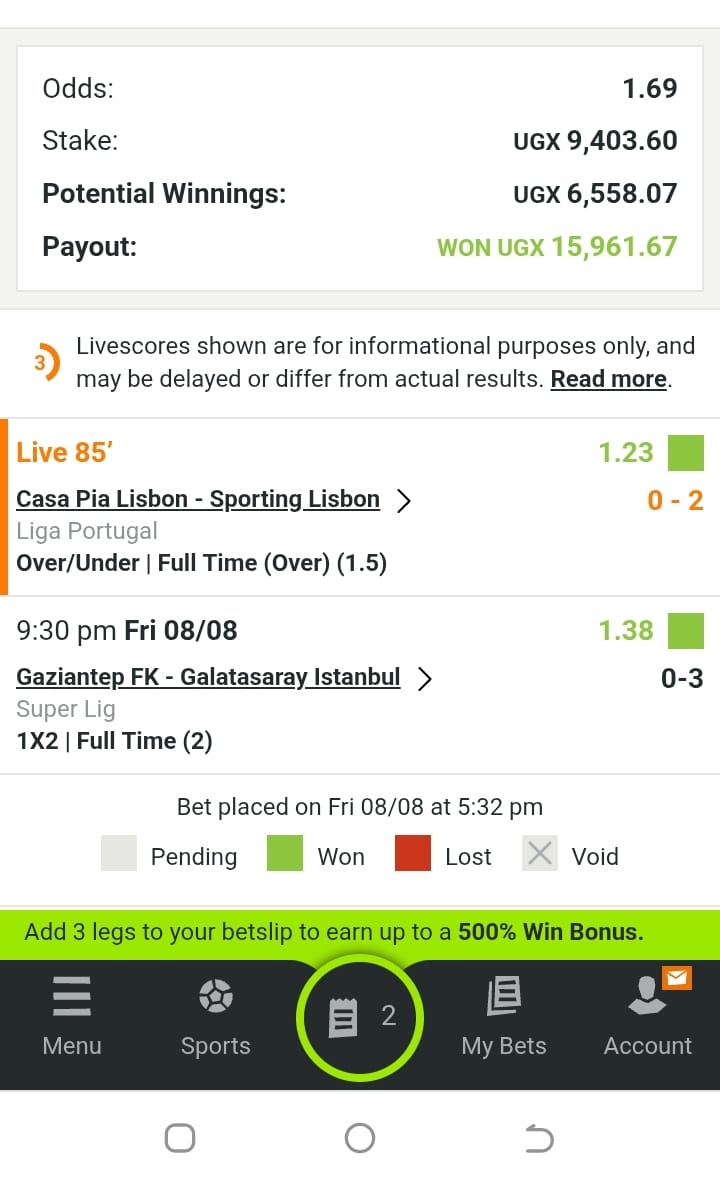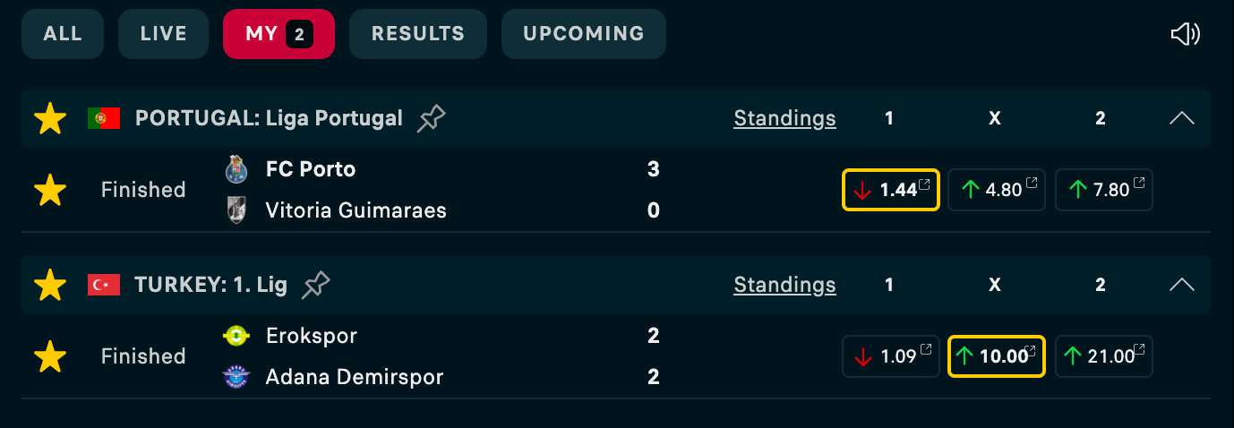 | POR | Sporting VS FC Arouca | 1 | 6 : 0 |