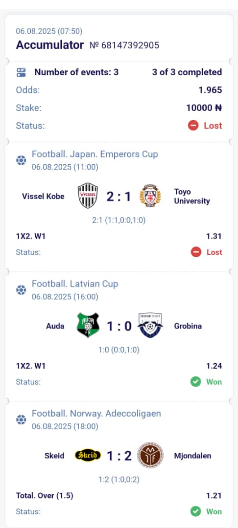 | NOR | Skeid Fotball VS Mjoendalen IF | ov 1.5 | 1 : 2 |